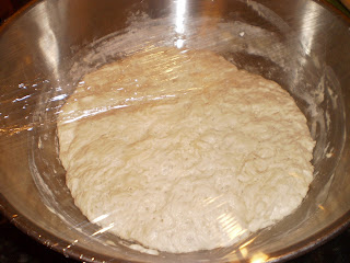 In a small bowl slightly beat eggs and add the milk to the bowl, with mixer on low speed, slowly add to the flour mixture until blended together...dough will be sticky. This is where you want to add your additional ingredients. I added 1 pkg dried cranberries, the zest from 2 oranges and 1 1/2 cups of sliced almonds. Continue to mix until ingredients are combined.